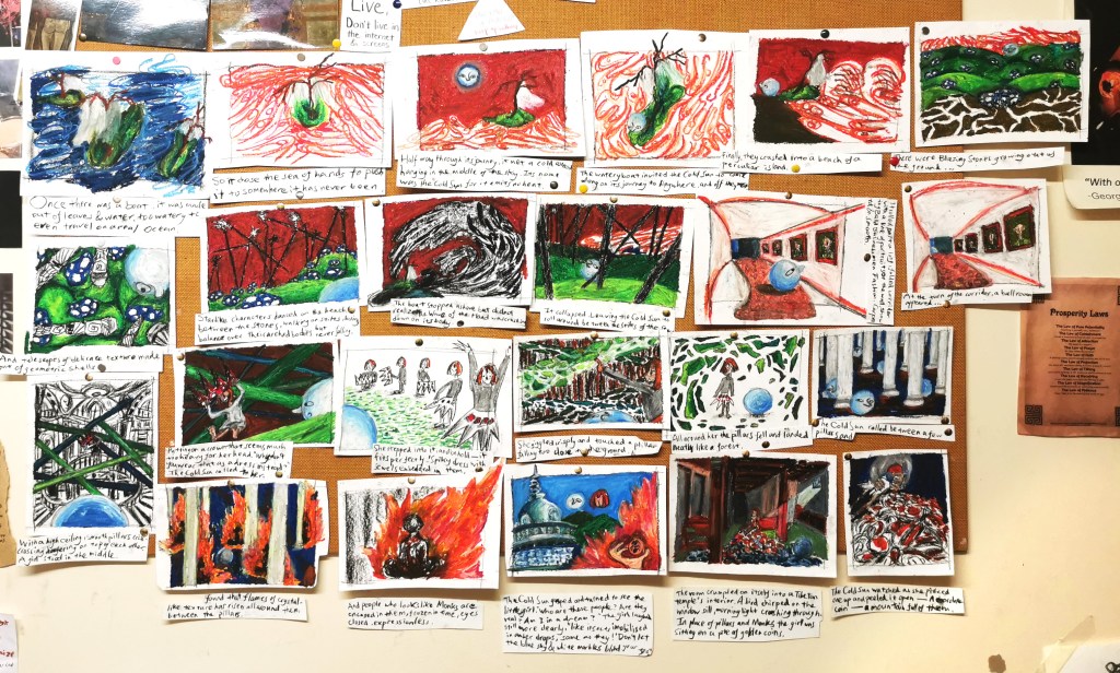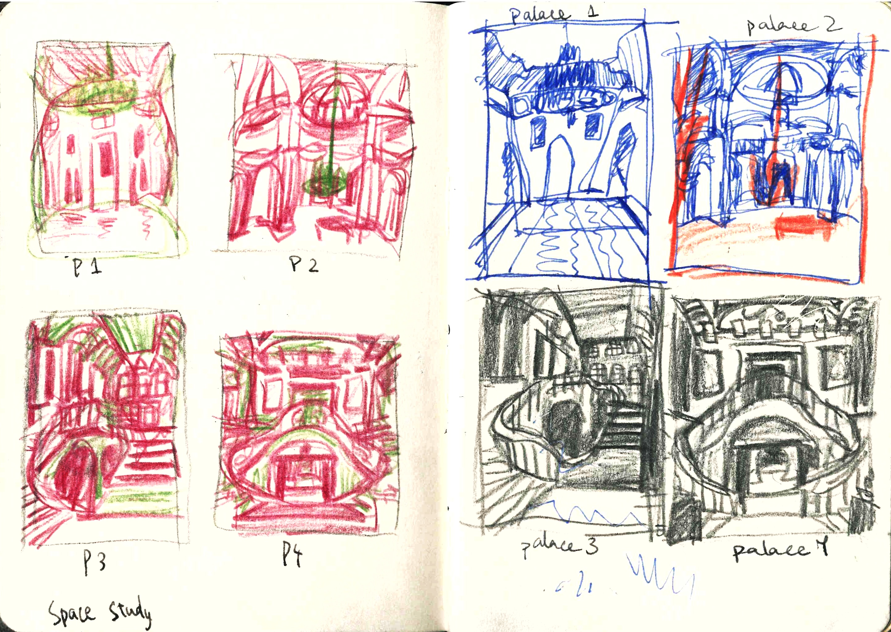 storyboard and concept sketches for